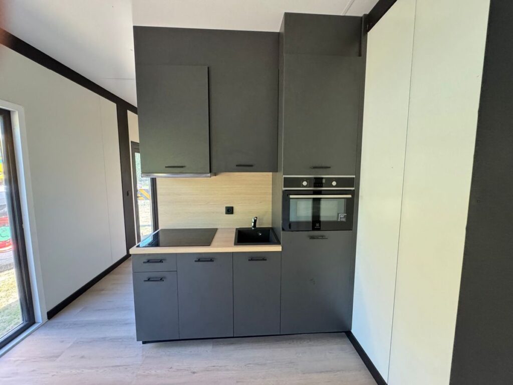 De indeling kun je grotendeels zelf bepalen. Je kiest of je een open ruimte wilt of een woning met toilet en keukenblok. Airconditioning en ventilatie zijn bij te bestellen.